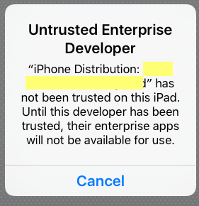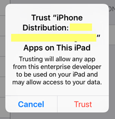 You will now see this request to trust the enterprise developer and the name of the CMRemoteSales app will be shown.