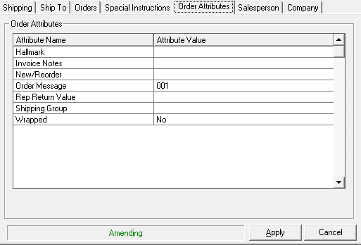 Optional extended attributes of an order can be adjusted in this area. The attributes available is dependent on the system setup for each individual company.